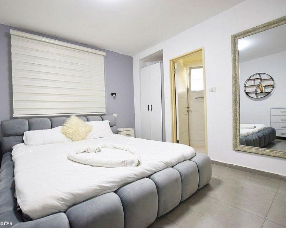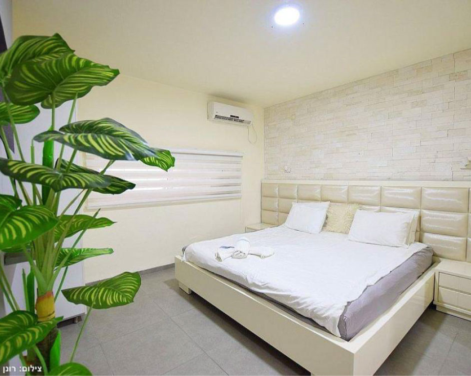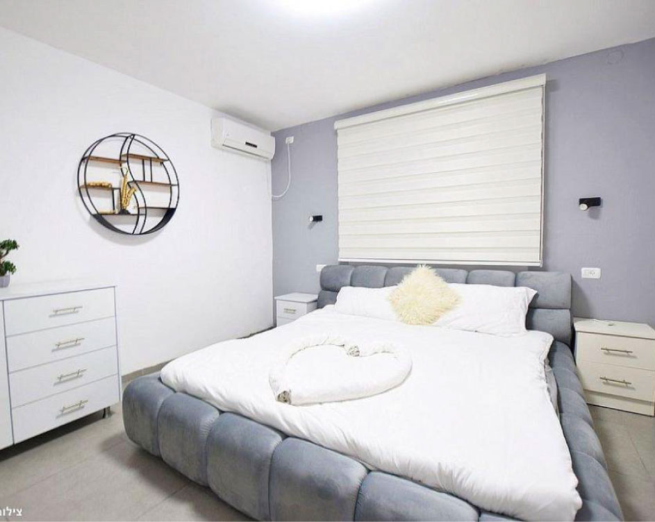 חדרי השינה הזוגיים: מיטה זוגית נוחה, מזגן, שידות אחסון וטלוויזיה