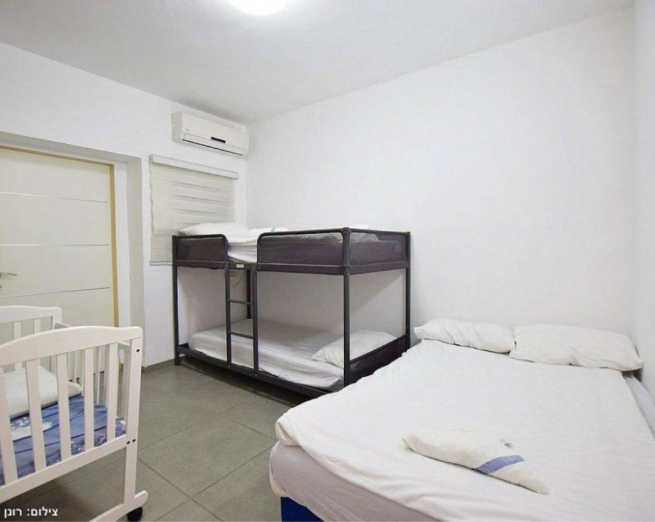 חדרי הילדים: בכל חדר מיטת קומותיים, ספה נפתחת למיטה וחצי, מזגן וטלוויזיה