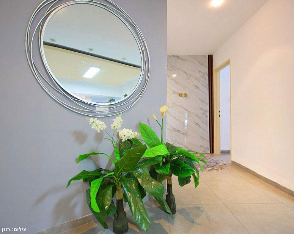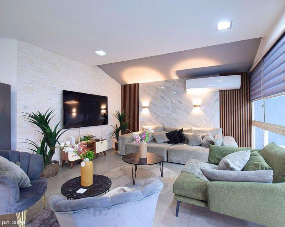 סלון מרווח עם ספה גדולה, טלוויזיה עם חיבור לYES